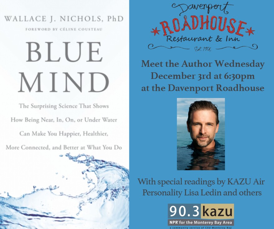 KAZU is a proud sponsor of a "Meet the Author" event at the Davenport Roadhouse on Wednesday, December 3rd. This event features marine biologist and local surfer Wallace J. Nichols, author of Blue Mind. He will discuss the research behind his work on how living near, in or on water benefits us. KAZU on-air host Lisa Ledin and others will read excerpts from his New York Times bestseller.