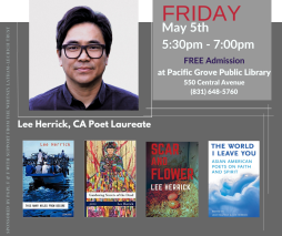 PGPL is pleased to host Lee Herrick, 10th California Poet Laureate, and the first Asian American to serve in the role, on May 5, 2023 at 5:30pm.