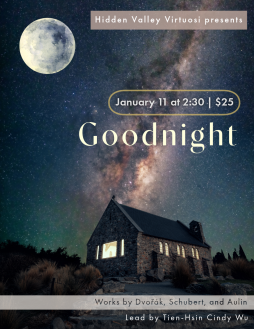 Hidden Valley Virtuosi presents "Goodnight" a chamber concert featuring works by Dvorák, Schubert and Aulin. Sunday January 11, 2026 at 2:30 p.m.