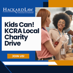 "Hackard Law is excited to support the KCRA 3 Kids Can! Food Drive, which has been assisting our local families since 1987. Running from October 9th to November 10th, this event will provide food aid across Northern California. We are proud to be involved and encourage others in the community to join us! Schools can participate by signing up as donation locations, and we welcome individuals to join our effort by contributing non-perishable food items. Together, we can make a difference!