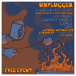 Swap screen time for real time. A cost free 18 years and older night to unplug, relax, and connect in a cozy venue by locking your phone away and enjoying relaxed time free of digital distractions, surrounded by people open to connect. This event ensures you have blocked off, screen-free time in your agenda. Bring your book, the art project you are working on, and a friend and leave your phone in the car. Unwind, meet others, have something yummy to eat and drink and catch up on hobbies you never have the time for. Coffee, yummy treats, art opportunities, lawn games, and live music provided.