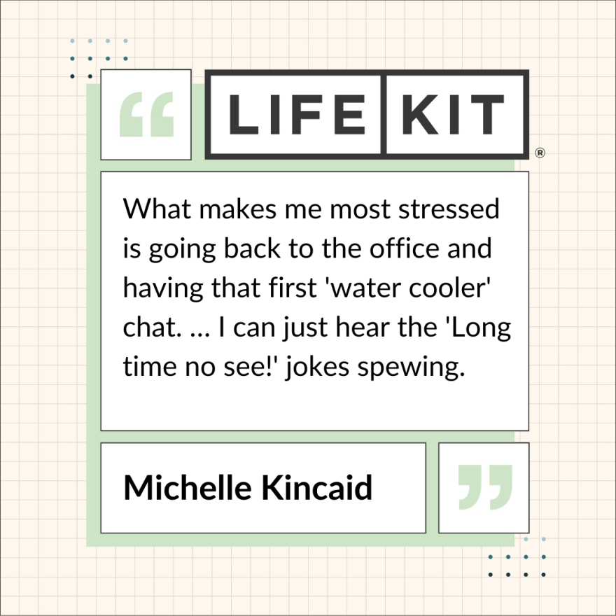 If you've been working remotely and you're worried about how to approach that first conversation back at the office, chances are you're not the only one feeling it — science tells us we all tend to be more self-conscious than necessary in new social situations. Headlee suggests addressing the elephant in the room right away. "Be honest about it," Headlee says, because "sometimes when you name something, it takes away its power." Acknowledging the awkward with something as simple as, "So this is weird, right?" can clear the air and get everyone moving forward.